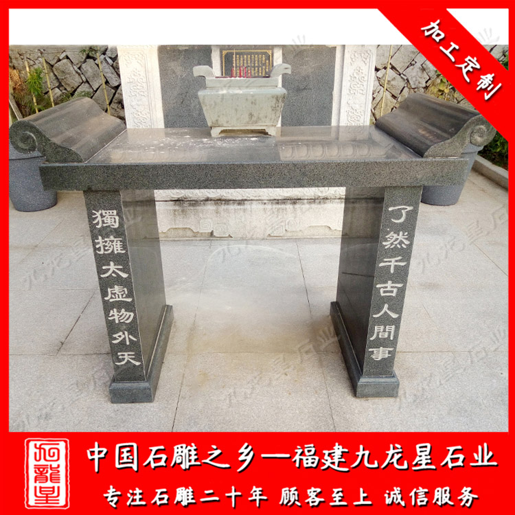 在早期的寺廟祠堂里,我們所看見(jiàn)的供桌,都是以木質(zhì)材料為主,而如今寺廟供桌,大多都采用石材的,由于石材供桌對(duì)于安全性和實(shí)用性更高,并且顯得更加的大氣,因此在很多寺廟祠堂中,石材供桌的需求也就越來(lái)越高了,其特性不易腐蝕、不易磨損、抗風(fēng)化能力強(qiáng)、吸水性較低、保留一時(shí)間長(zhǎng)久。