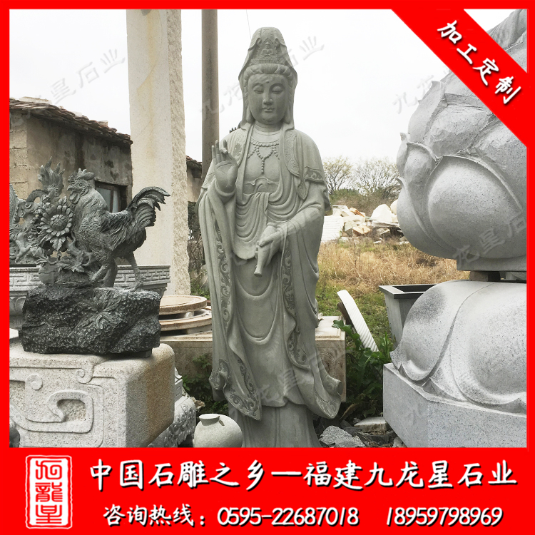 石雕觀音(石雕滴水觀音 露天觀音像 寺廟石雕佛像)——九龍星石業(yè)
