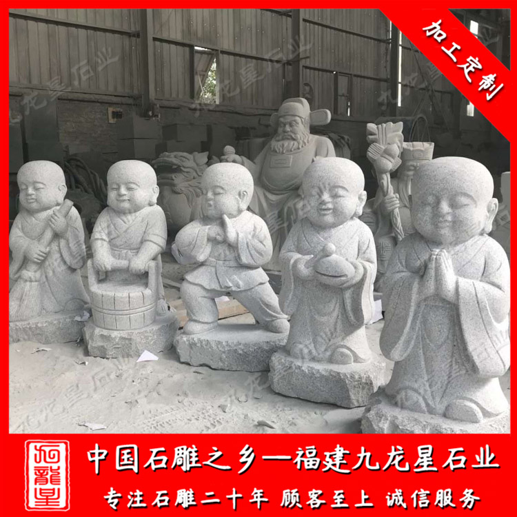 九龍星石業(yè)常年批發(fā)石雕小和尚、石雕小沙彌。福建九龍星石業(yè)發(fā)展有限公司有著二十多年制作石雕雕刻經(jīng)驗(yàn),采用優(yōu)zhi的石質(zhì)精雕細(xì)琢而成,善用千年文化雕鑿工藝的研究、傳承、融合和發(fā)揚(yáng),使石雕作品承載藝術(shù)文化、體現(xiàn)更多社會(huì)價(jià)值。