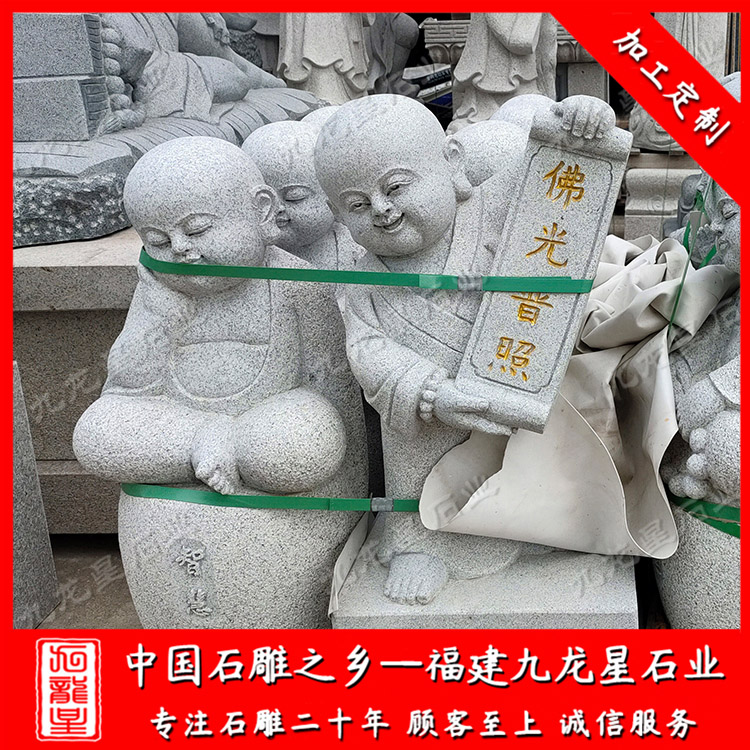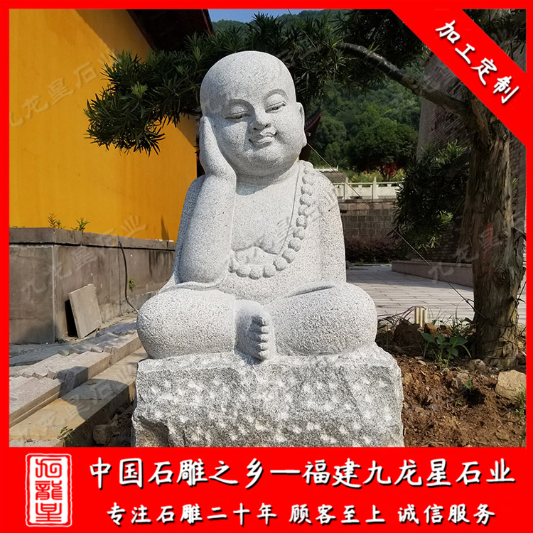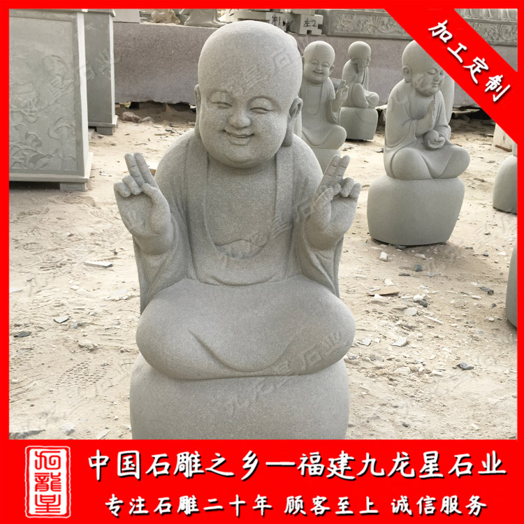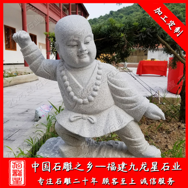 當(dāng)我們進(jìn)入寺廟的時(shí)候,經(jīng)常會(huì)看到寺廟兩邊擺放一些比較特別的石雕小沙彌,小沙彌形象一般都是小孩童的樣子,比如早些年由釋小龍和郝邵文演的小和尚電影,其小沙彌形象深入人心。 石雕小沙彌,在雕刻上石材種類很多,總的來說以花崗巖、大理石、青石等等。