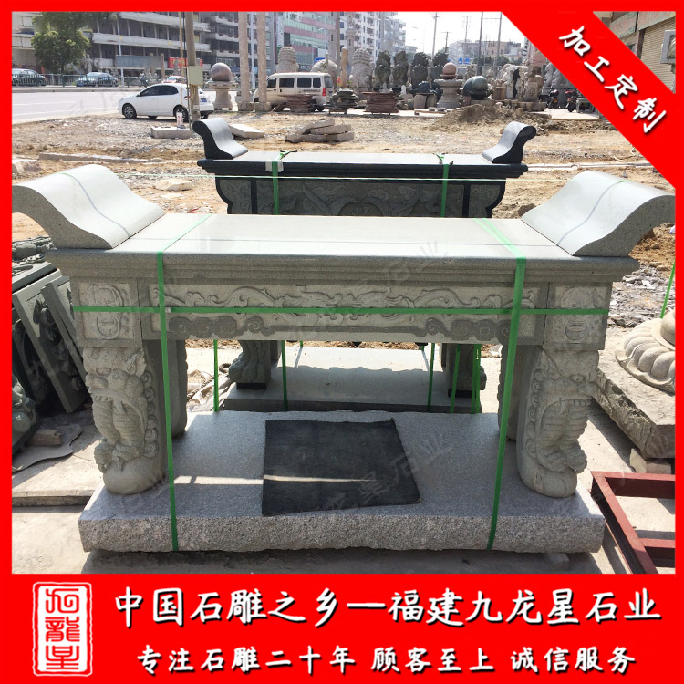 九龍星石業(yè)位于福建惠安,石雕供桌廠家,常年加工批發(fā)石雕供桌、石材供桌,可擺放于寺廟寺院、宗祠祠堂等地方。石雕供桌價(jià)格合理,石雕供桌加工期快,歡迎廣大客戶前來咨詢。