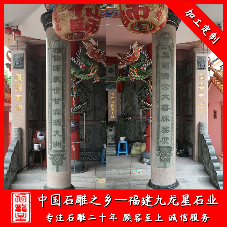 九龍星石業(yè)是石材圓柱廠家,常年批發(fā)祖厝石材圓柱、寺廟走廊石雕圓柱、寺廟大殿石材圓柱、宗祠石雕圓柱、景區(qū)石材圓柱子等等。工期快,價格合理,歡迎咨詢我們。
