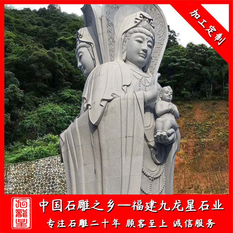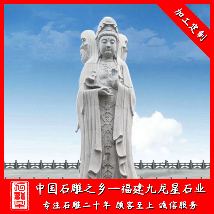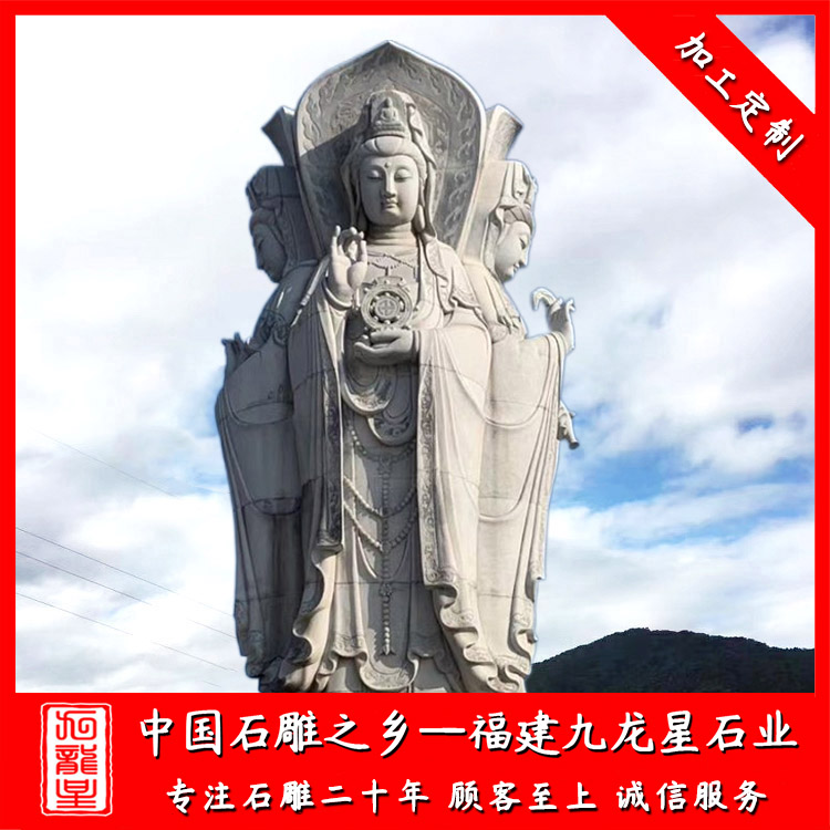 石雕觀音(大理石三面觀音效果圖 戶(hù)外大型石雕三面觀音圖片)——九龍星石業(yè)