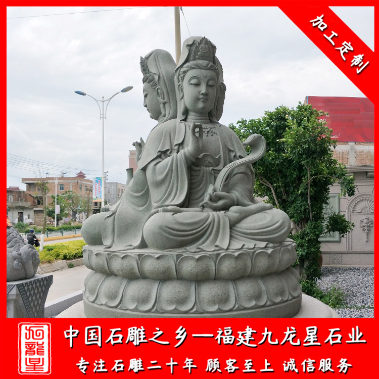 石雕觀音像在雕刻中,最常做的是滴水觀音,還有三面觀音,石雕三面觀音,在字面意思就是一個(gè)觀音像有三個(gè)面,正面觀音手持經(jīng)篋,右面觀音手持蓮花,左面觀音手持念珠,依次象征智慧,平安,仁慈。