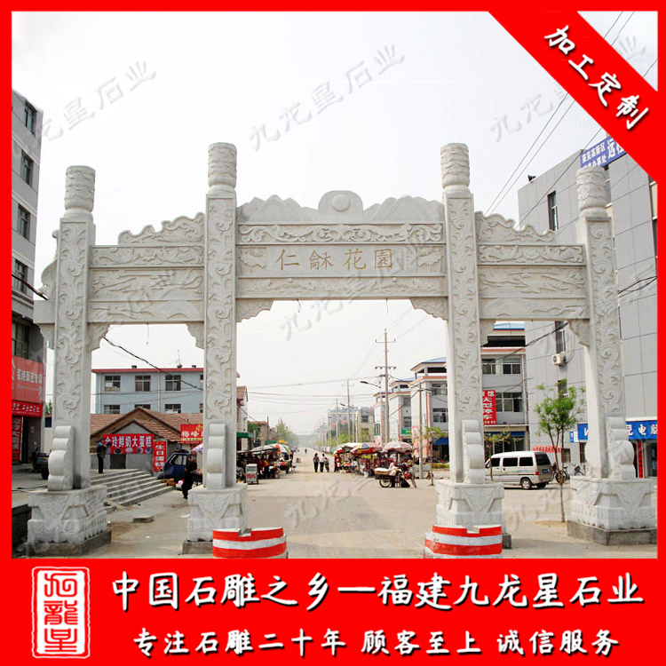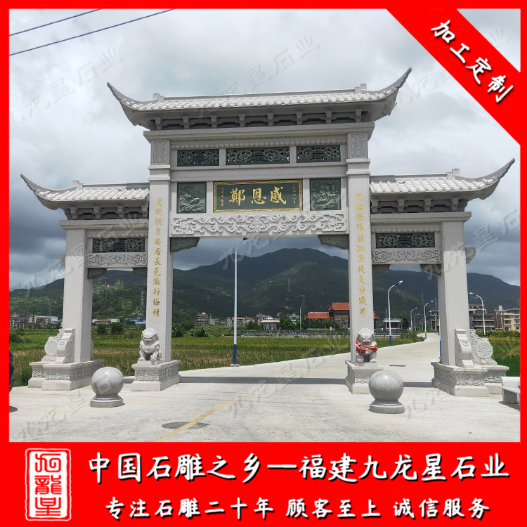 石雕牌坊(新農(nóng)村石牌坊 石刻三門村頭石牌坊廠家)——九龍星石業(yè)