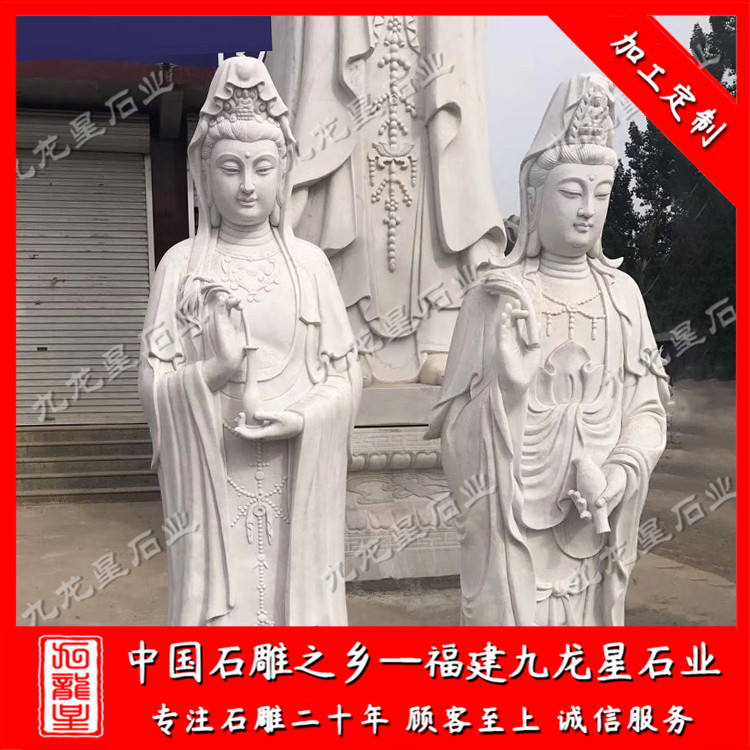 石雕觀音的制作材質(zhì)有許多,有漢白玉、大理石、花崗巖、青石等石材,其石材有著共同的特性,即不易磨損、不易腐蝕、抗風(fēng)化能力強(qiáng)、吸水性較低、保留時間長久。石雕觀音的大小樣式亦各不相同,即因人而異、因地制宜。石雕觀音的雕刻樣式有多樣,有送子觀音、兩面觀音、三面觀音,其雕刻的復(fù)雜程度決定石雕觀音加工過程中的技術(shù)要求的精湛,及精益求精。
