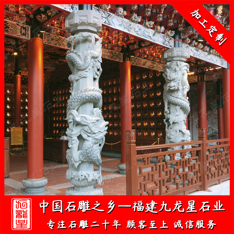 九龍星石業(yè)雕刻的石雕龍柱、石雕盤龍柱,巨龍氣勢(shì)昂揚(yáng)、盤旋在石柱柱身上,匠心制造,細(xì)節(jié)雕刻到位。龍身與柱體貼合恰到好處,整體線條上下一氣呵成,整體看上去霸氣十足。