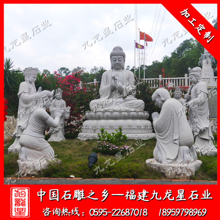釋迦牟尼的意思是“能忍”、“能儒”、“能寂”,因父為釋迦族,成道后被尊稱為釋迦牟尼,即“釋迦族的圣人”,源于印度。該作品氣勢(shì)雄偉,慈祥端莊,作品不論在整體構(gòu)圖的把握方面,還是細(xì)節(jié)的刻畫上都做到了盡善盡美,可謂是巧奪天工,特別在底座的配置上都顯得極為精美,石雕佛像具有較高的藝術(shù)欣賞價(jià)值。石雕佛像-釋迦牟尼佛站像采用優(yōu)質(zhì)花崗巖精雕細(xì)琢而成。石佛,佛教石雕佛像的簡(jiǎn)稱,釋迦牟尼作為佛教創(chuàng)始人,人們雕刻的佛像,“千佛一面”都以他為標(biāo)準(zhǔn),數(shù)量 多。