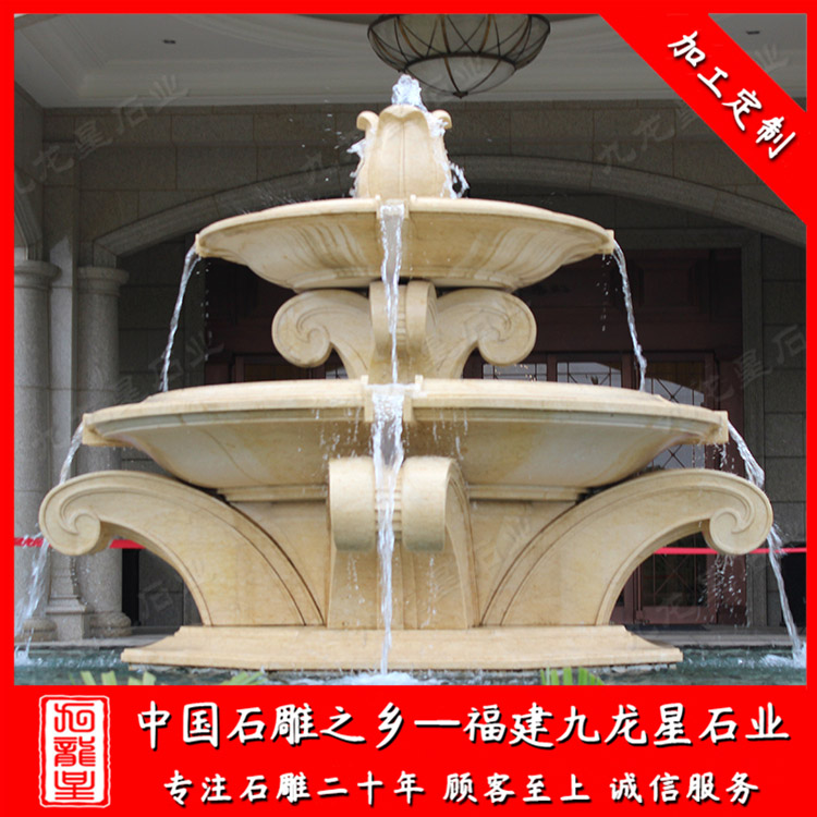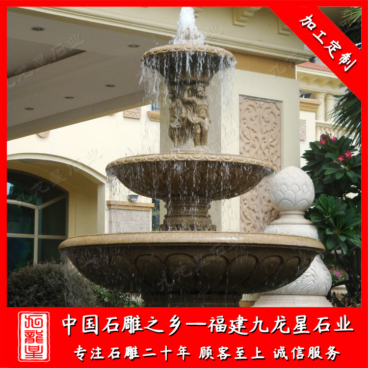 噴泉石雕廠家定做大型石雕水景噴泉,安裝風格大概可以分為中式大型石雕水景噴泉和歐式大型石雕水景噴泉兩種。按照款式有單層石雕水景噴泉、雙層石雕水景噴泉、三層石雕水景噴泉等。若是按照材質(zhì)、石料劃分有埃及米黃石雕水景噴泉、銹石大型石雕水景噴泉、黑石石雕水景噴泉、漢白玉石雕水景噴泉等等。這些款式都可以根據(jù)您的喜歡找噴泉石雕廠家進行定做。