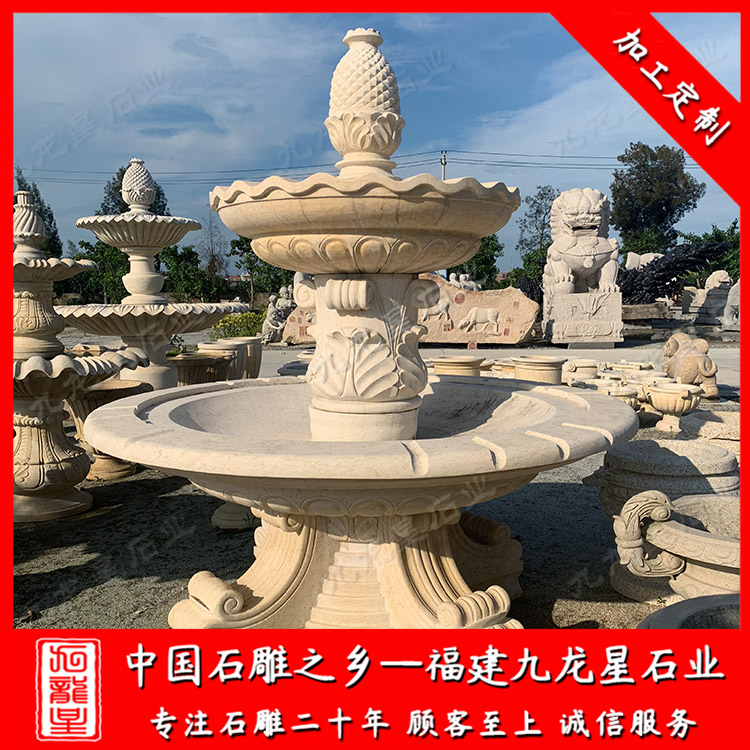 石材噴泉水缽廠家加工歐式酒店門口噴泉水缽?fù)ǔ鸦ò?、貝殼、西方人物雕塑等。較多的為簡約歐式風(fēng),石材噴泉水缽為兩層。中式的酒店門口石材噴泉水缽會加入蓮花、獅子、大象等帶有吉祥寓意的雕塑。