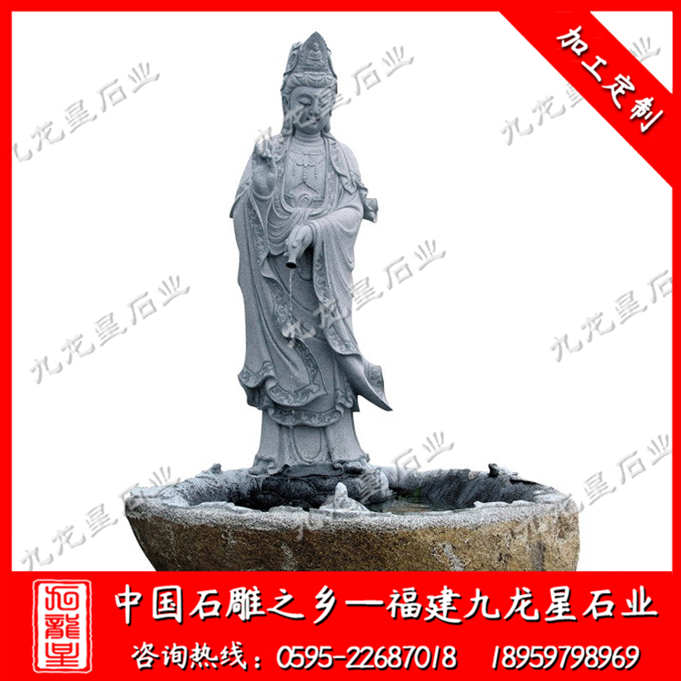 石雕觀世音菩薩具有平等無私的廣大悲愿,當眾生遇到任何的困難和苦痛, 如能至誠稱念觀世音菩薩,就會得到菩薩的救護。而且,觀世音菩薩最能適應眾生的要求,對不同的眾生,便現(xiàn)化不同的身相,說不同的法門。在佛教的眾多菩薩中,觀世音菩薩也最為民間所熟知和信仰。在中國的江、浙、閩、廣、臺灣,以及南洋華僑間,觀音信仰極為普及,所謂“家家阿彌陀,戶戶觀世音”。浙江的舟山群島,自古以來也一直被視為觀世音菩薩應化的道場。
