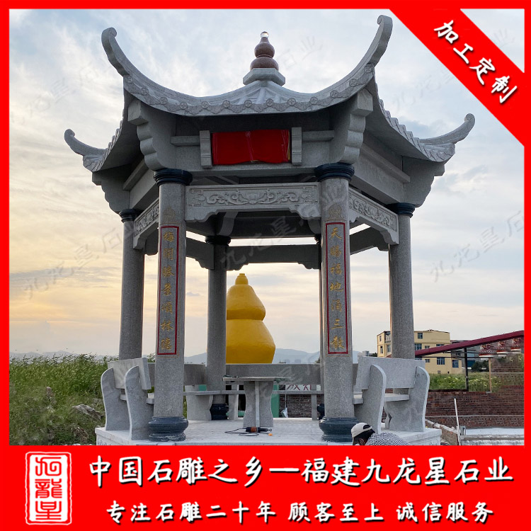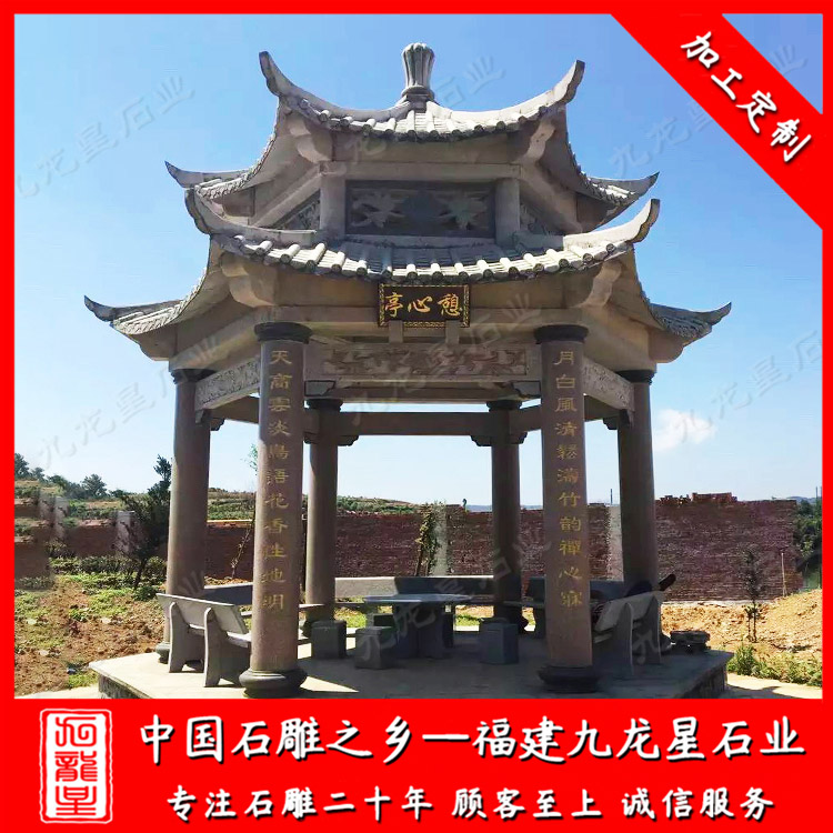 石雕涼亭(新農(nóng)村村口石材涼亭 六角石涼亭廠家安裝)——九龍星石業(yè)