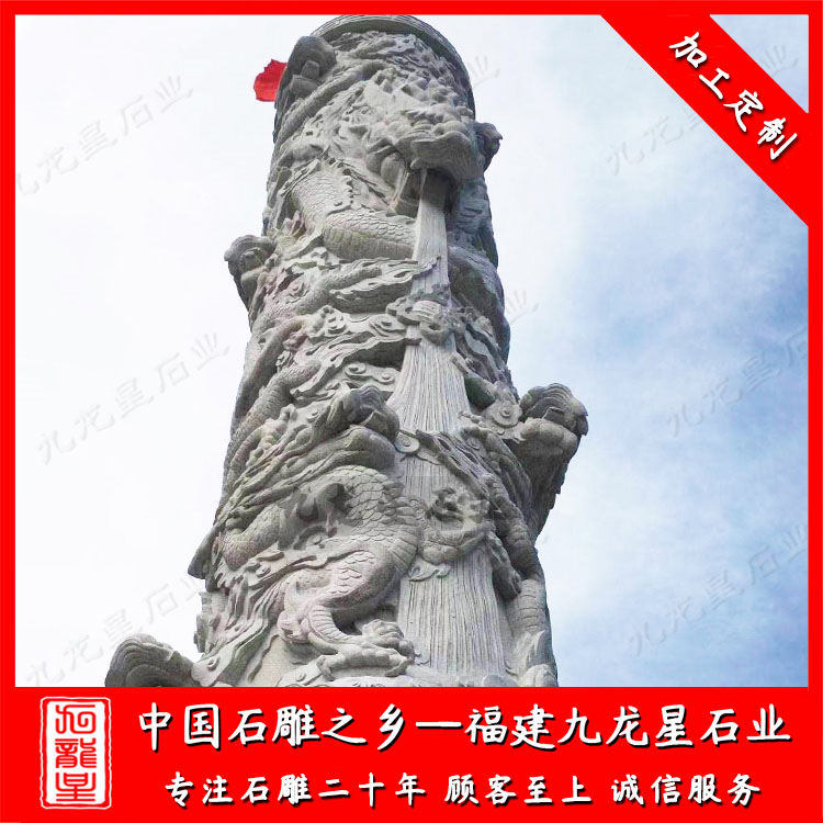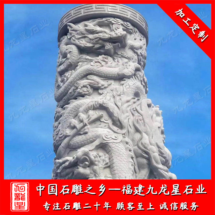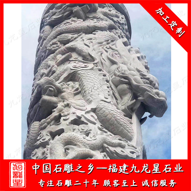 石雕龍柱(廣場(chǎng)石雕九龍柱廠家批發(fā) 景區(qū)石雕盤龍柱圖片)——九龍星石業(yè)