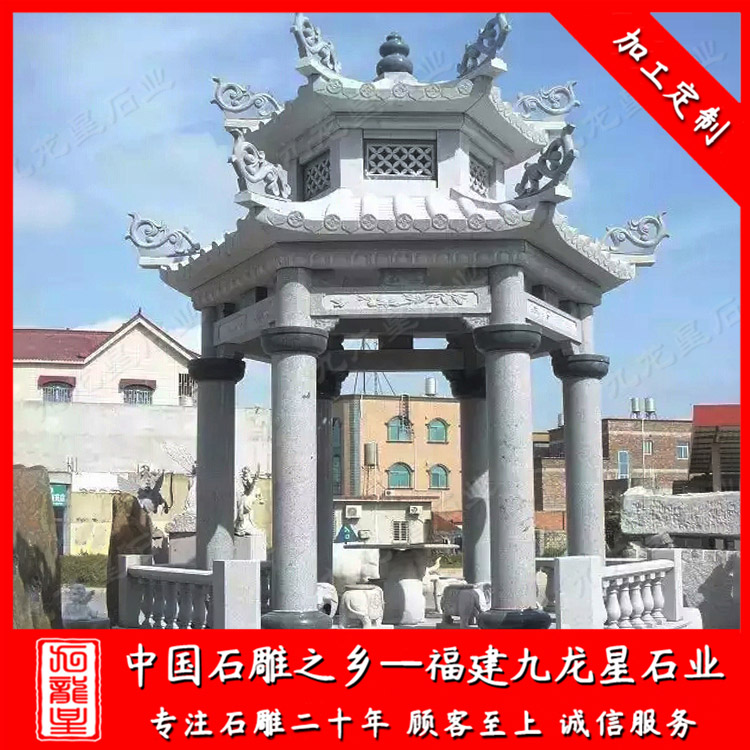 石雕涼亭(石材涼亭加工廠家 批發(fā)戶外石材涼亭)——九龍星石業(yè)
