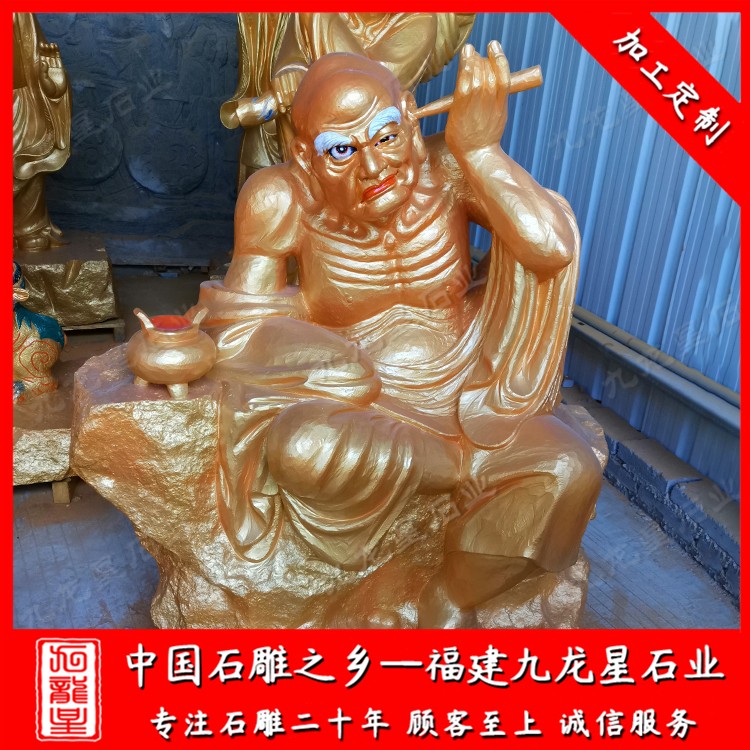 十八羅漢石雕像全身用鍍漆刷漆成金色,尊尊生動傳神。靜坐羅漢石雕像神態(tài)祥和平靜、安詳?shù)刈?。托塔羅漢,相傳是釋迦牟尼佛收的zui后一位門生,因為懷念釋迦牟尼佛,所以經(jīng)常手托著佛塔。坐鹿羅漢石雕像眉目間透露著沉穩(wěn)智慧、慈祥善良.......