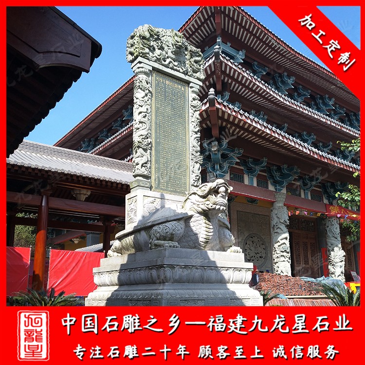寺院石碑是我國石碑中一個(gè)重要的組成部分,寺院石碑是屬于功德碑,紀(jì)念碑,他有著悠久的歷史,幾乎滿座寺院都有石雕龜馱碑或龍頭碑。