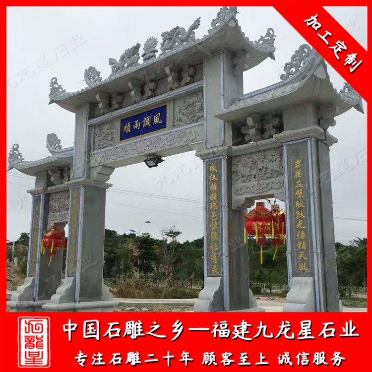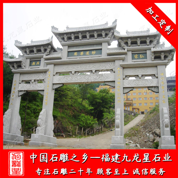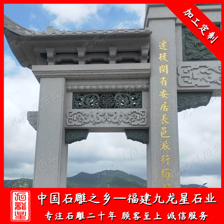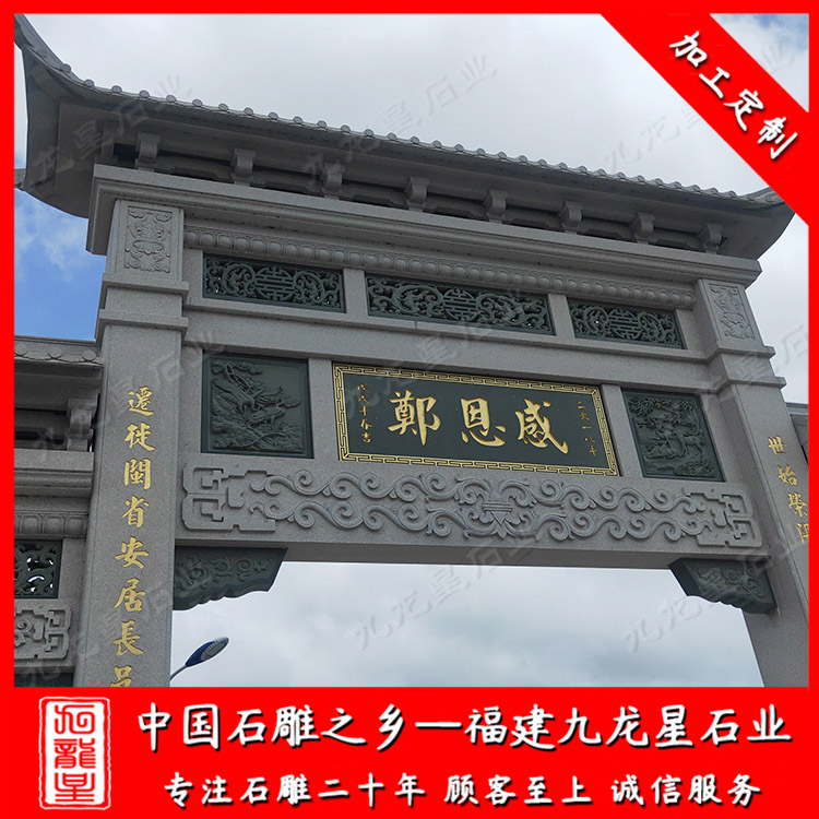 農村牌坊主要以石牌坊為主。農村石雕牌坊堅固美觀安全,相比于水泥牌坊、木牌坊、輕鋼牌坊具有很多優(yōu)勢。