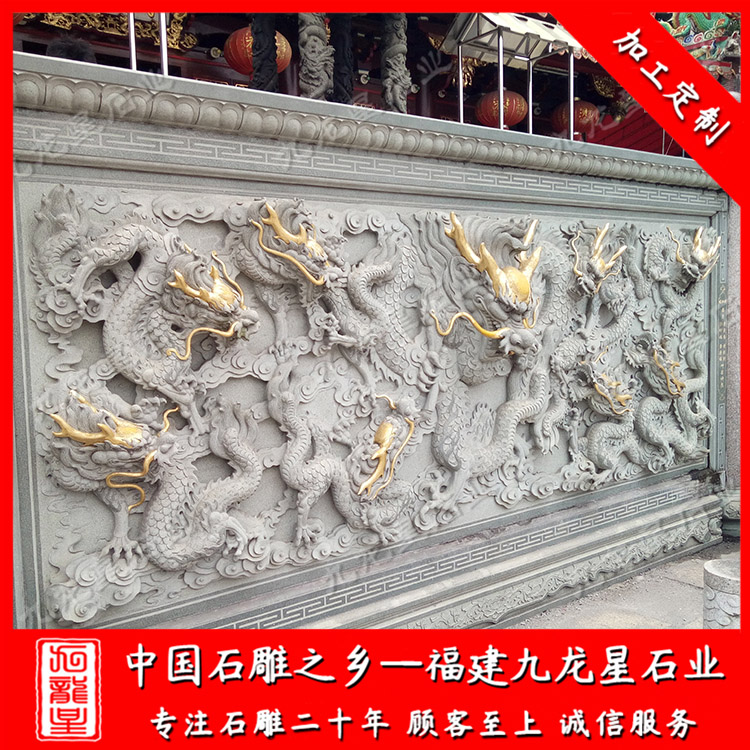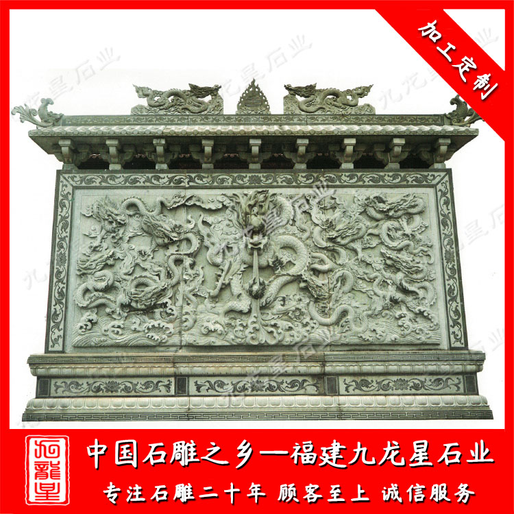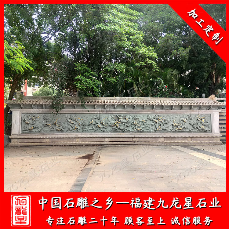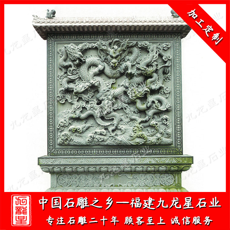 石雕照壁(九龍壁浮雕墻圖片 石雕九龍壁廠家雕刻)——九龍星石業(yè)