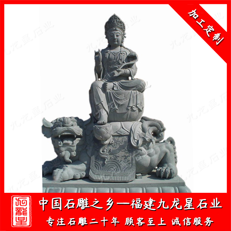石雕文殊普賢菩薩(文殊菩薩大型石雕廠家 雕刻石雕文殊菩薩)——九龍星石業(yè)