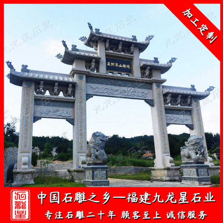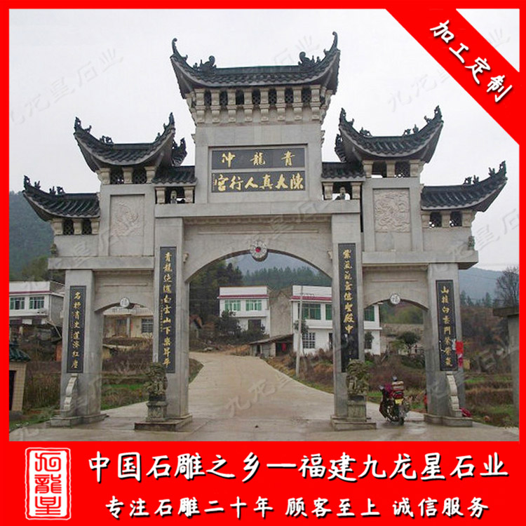三門五樓家族祠堂石雕牌坊安裝居多,三門五樓石雕牌坊是家族祠堂常見(jiàn)的一款石牌坊。三門五樓家族祠堂石雕牌坊整體大氣、有氣勢(shì),又似的家族祠堂、祖氏四周的環(huán)境更為隆重。