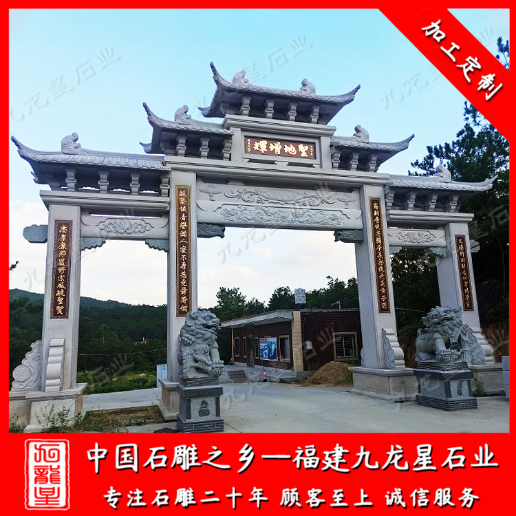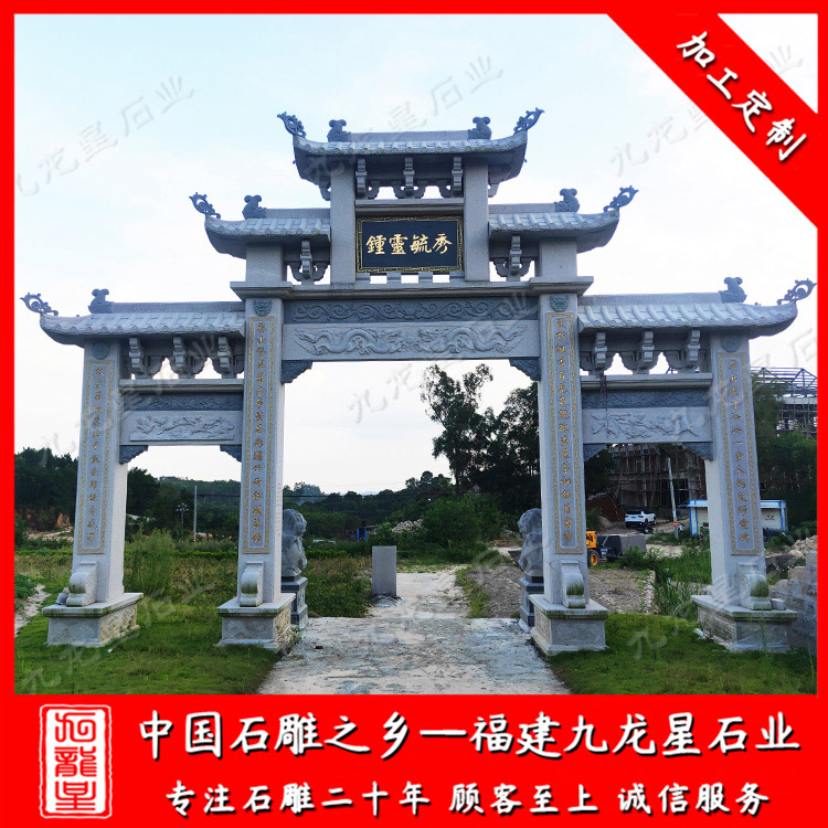 石雕牌坊(家族祠堂石雕牌坊廠家 三門五樓祖氏石牌坊效果圖)——九龍星石業(yè)