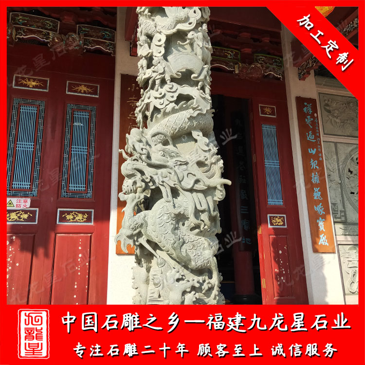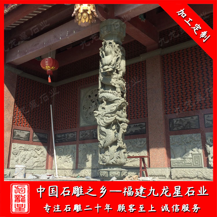 石雕龍柱(寺廟石雕龍柱廠家 青石盤龍柱圖片大全)——九龍星石業(yè)