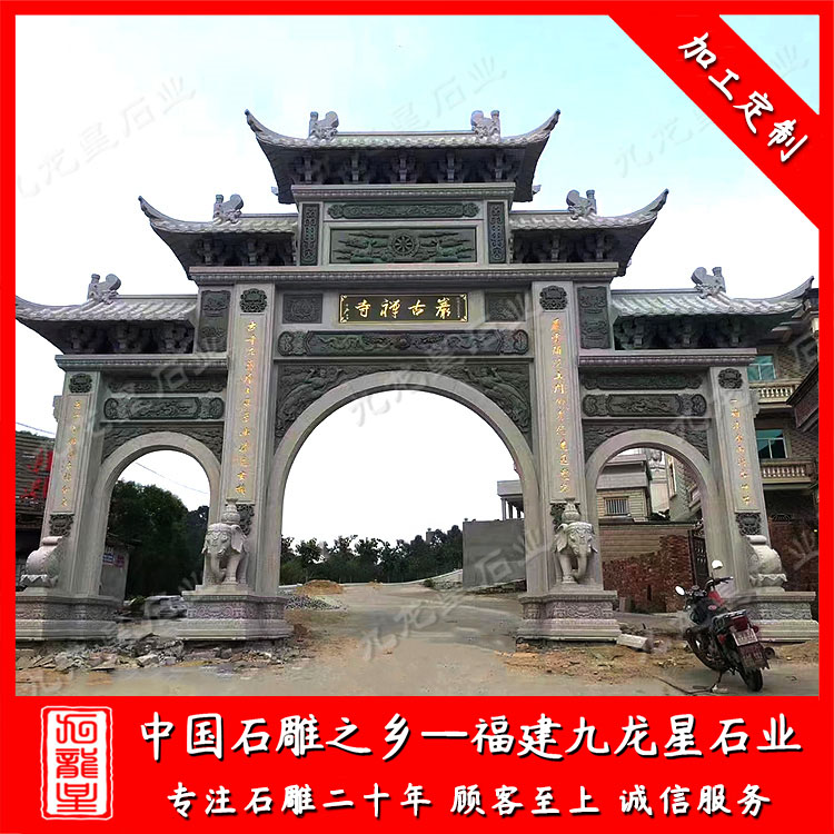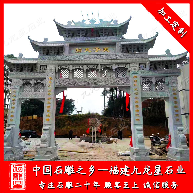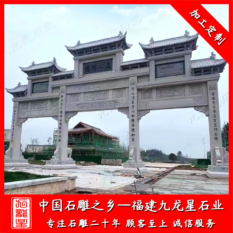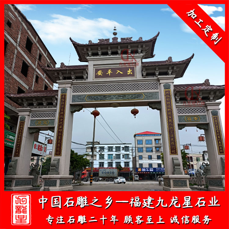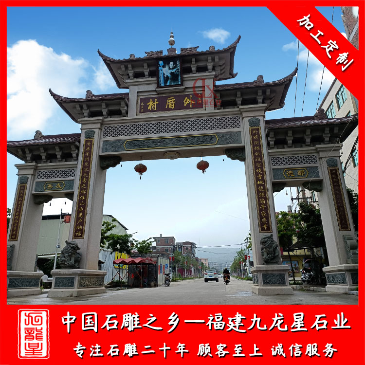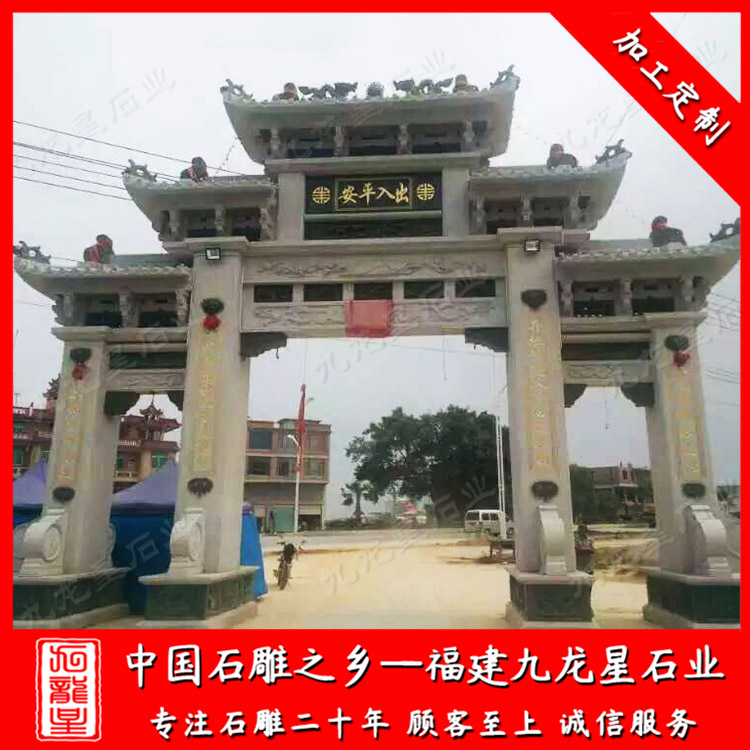 石雕牌坊(農(nóng)村石牌坊大門圖片 福建村口石牌坊廠家雕刻)——九龍星石業(yè)