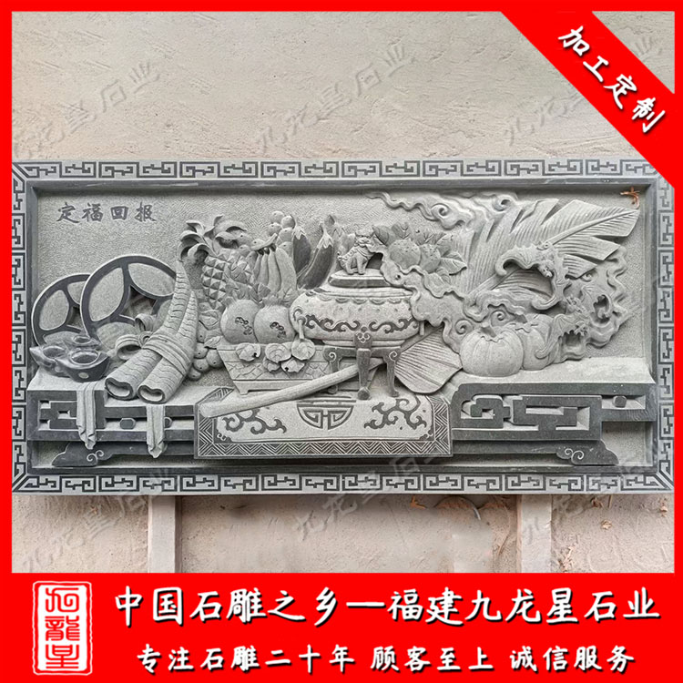 青石浮雕雕刻花鳥(niǎo)壁畫(huà)我們經(jīng)常在寺廟大殿內(nèi)的墻壁上面,寺院外墻門(mén)面上、宗祠祠堂的室內(nèi)或外墻上面看到。