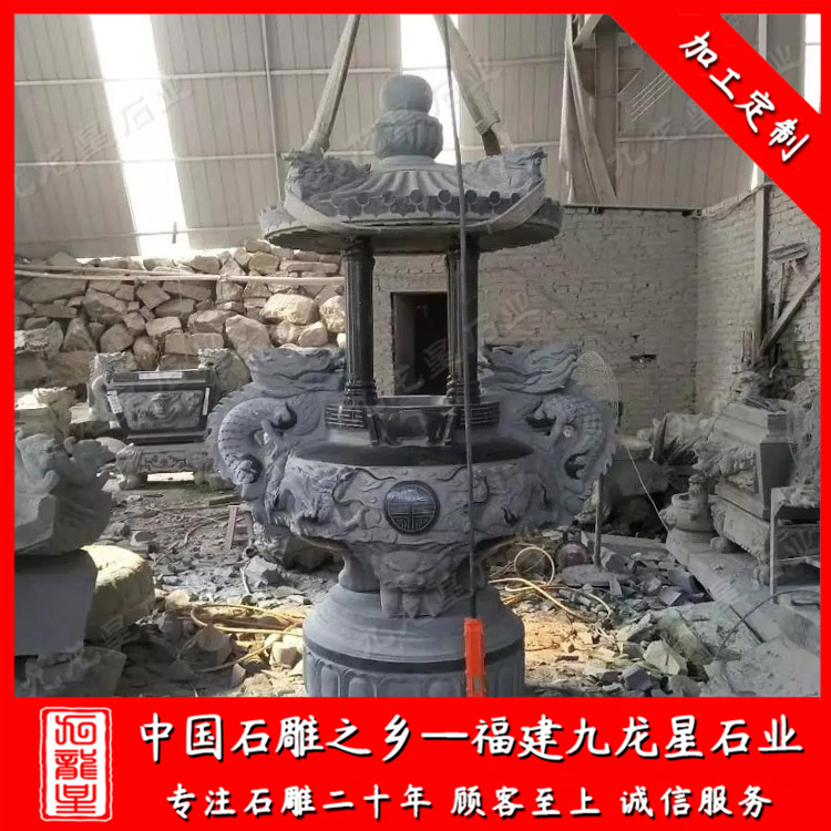 寺廟宗祠石雕香爐圖片 大型石雕香爐報價多少)——九龍星石業(yè)