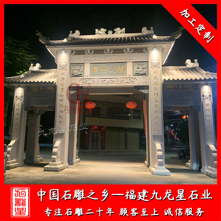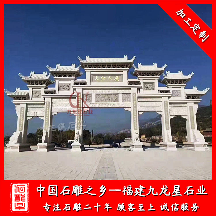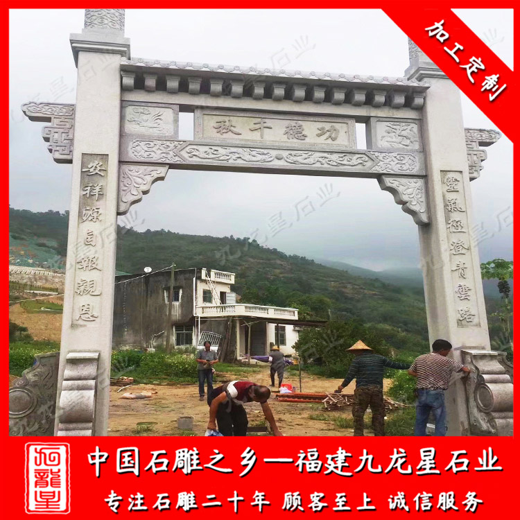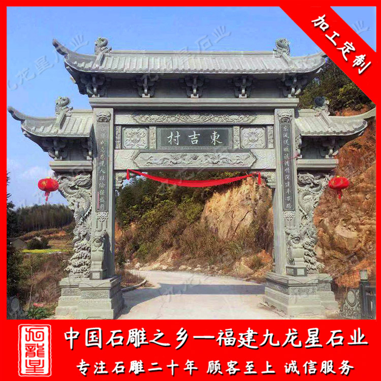 石雕牌坊(福建村口石牌坊廠家 新農(nóng)村入口石雕牌樓圖片)——九龍星石業(yè)